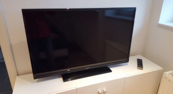 - Schlafcouch im Wohnzimmer (1,20 m x 1,80 m), Flachbildfernseher